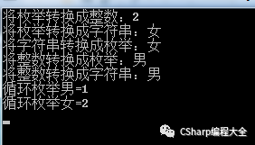 <2>Enum.Parse()方法。这个方法带3个参数,第一个参数是要使用的枚举类型。其语法是关键字typeof后跟放在括号中的枚举类名。typeof运算符将在第5章详细论述。第二个参数是要转换的字符串,第三个参数是一个bool,指定在进行转换时是否忽略大小写。最后,注意Enum.Parse()方法实际上返回一个对象引用—— 我们需要把这个字符串显式转换为需要的枚举类型(这是一个取消装箱操作的例子)。对于上面的代码,将返回1,作为一个对象,对应于TimeOfDay.Afternoon的枚举值。在显式转换为int时,会再次生成1。