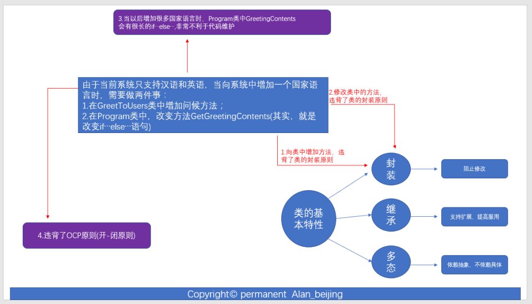 (1)、如上,我们将变化因子"语言"剥离出来,形成接口,以后只要每增加一个语言,只需实现接口即可,满足了OCP原则,基本解决了方案一中存在的问题;