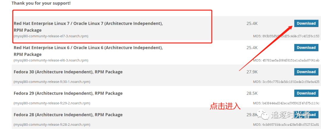官网下载地址:https://dev.mysql.com/downloads/repo/yum/