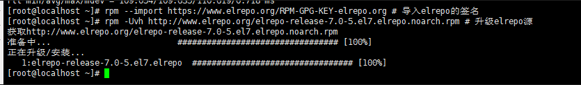 rpm --import https://www.elrepo.org/RPM-GPG-KEY-elrepo.org # 导入elrepo的签名rpm -Uvh http://www.elrepo.org/elrepo-release-7.0-5.el7.elrepo.noarch.rpm # 升级elrepo源