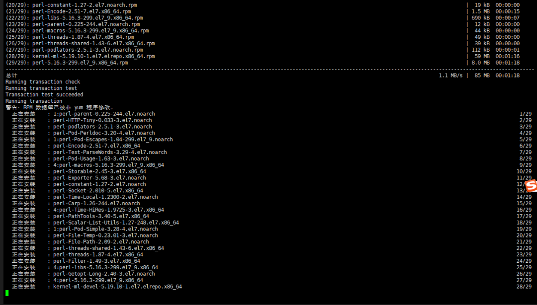 yum --enablerepo=elrepo-kernel install kernel-ml kernel-ml-devel -y安装内核会等个几分钟