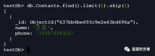 # 显示一条如何在跳过一条db.Contacts.find().limit(1).skip(1)