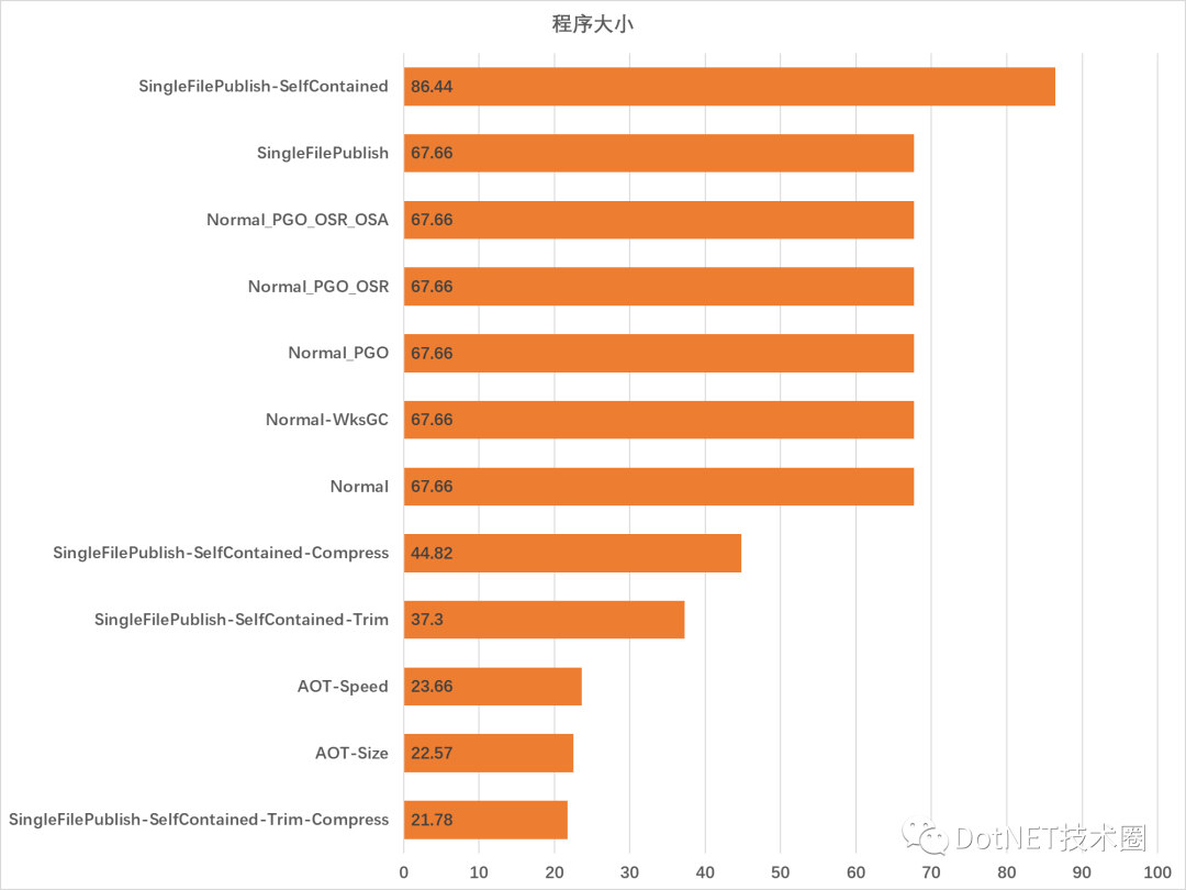 程序大小统计只发布文件中需要运行程序的大小,这个是和分发项目息息相关的,越小的程序体积,就越容易分发。注意:Normal发布都计算了67.5MB的.NET Runtime占用的空间。