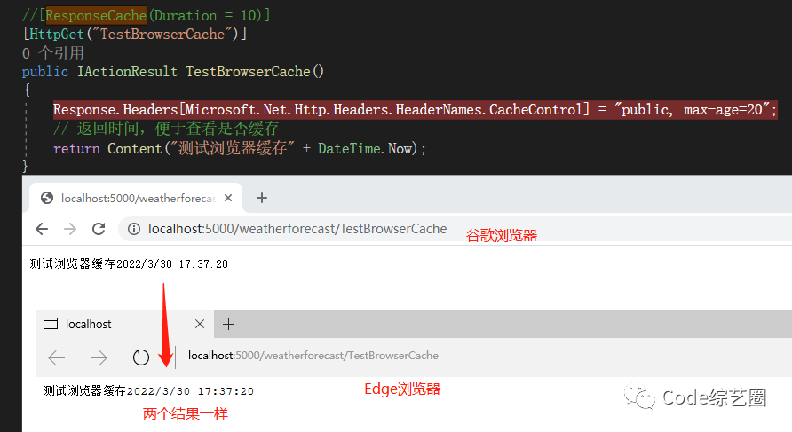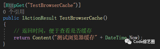 在接口方法上只需添加ResponseCache特性就可以实现浏览器缓存,如下: