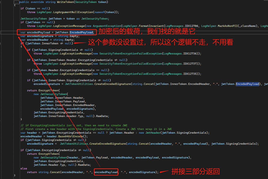 上面遇到的问题曾经花了我不少时间去排查,关键是有工具能解密的还有工具不能解密,一时不知道到底是谁的问题了,抱着试试看的态度,看看源码生成token三部分的字符串过程。