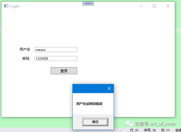 14、现在运行程序,打开了登录页面,进行验证一下,如下图所示,说明验证生效了。输入正确的用户名和密码就可以进入到MainWindow页面。