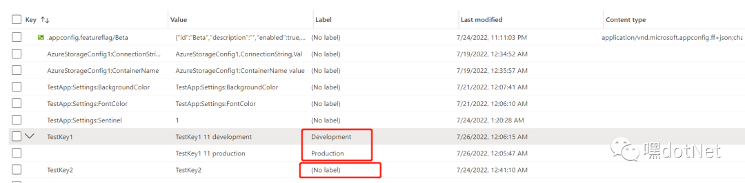 在Azure App Configuration ,引入一个Label的概念来实现;