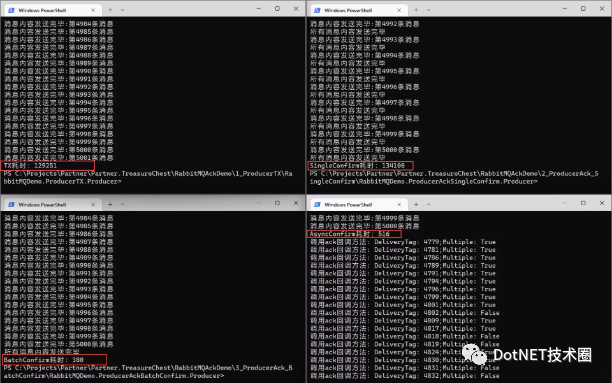 Console.WriteLine(channel.WaitForConfirms() ? "所有消息内容发送完毕" : "存在消息发送失败");