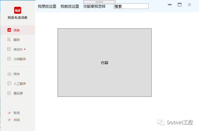 更多的时候,我们希望完全重写棕色部分。如下是一个框架的Window给我们提供的所有功能(包括边框拖动改变大小,按住标题区拖动改变位置),那么我们重写Style Template后,需要自己实现哪些部分那?