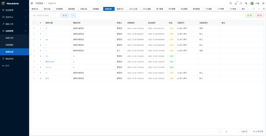 5、工作流采用bpmn.js、可视化表单采用VForm。