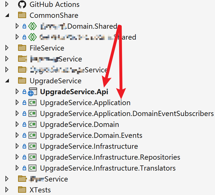 结果我在使用的时候出现了一个问题,在写web api层的时候会用HttpResponseDTO,在Application层也会用到我同时在这两层同时引用了Shared Project里的HttpResponseDTO这个时候就出现了一个冲突这个问题查了一早上。项目结构如下: