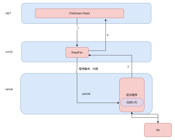 初始化时将SafeHandle、ThreadPool与IO完成端口进行绑定(比如:FileStream在Init时)