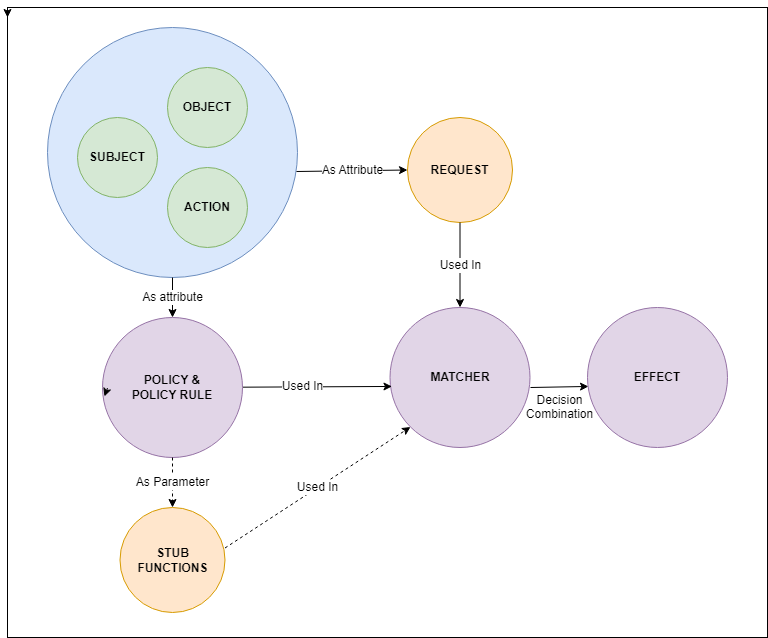 我们希望可以让指定的主体 subject,可以访问指定的资源 object,访问可以是读和写。这就是 Casbin 使用最广泛的方式。也称为 { subject, object, action } 流程。.