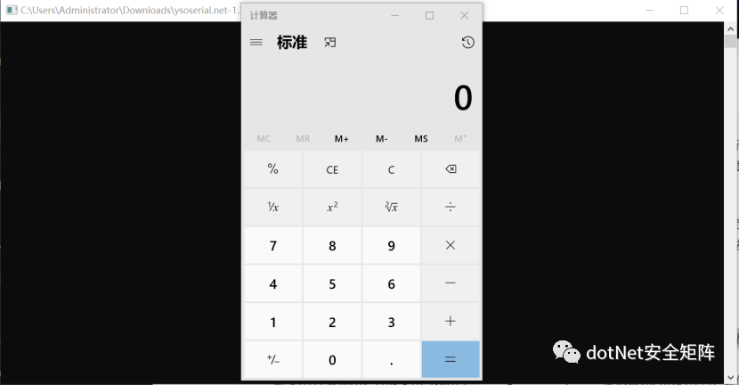 开放委托通过Delegate.CreateDelegate方法创建具有返回值的Func<Assembly, IEnumerable<Type>>委托,运行时通过typeof(Assembly).GetMethod("GetTypes"))反射创建实例成员GetTypes将其附加为程序集参数,这样便可获取Assembly程序集的类型,因为LINQ有延迟加载的机制,咱们需要它立即执行所以追加ToList() 就会立刻执行弹出计算器,如下图