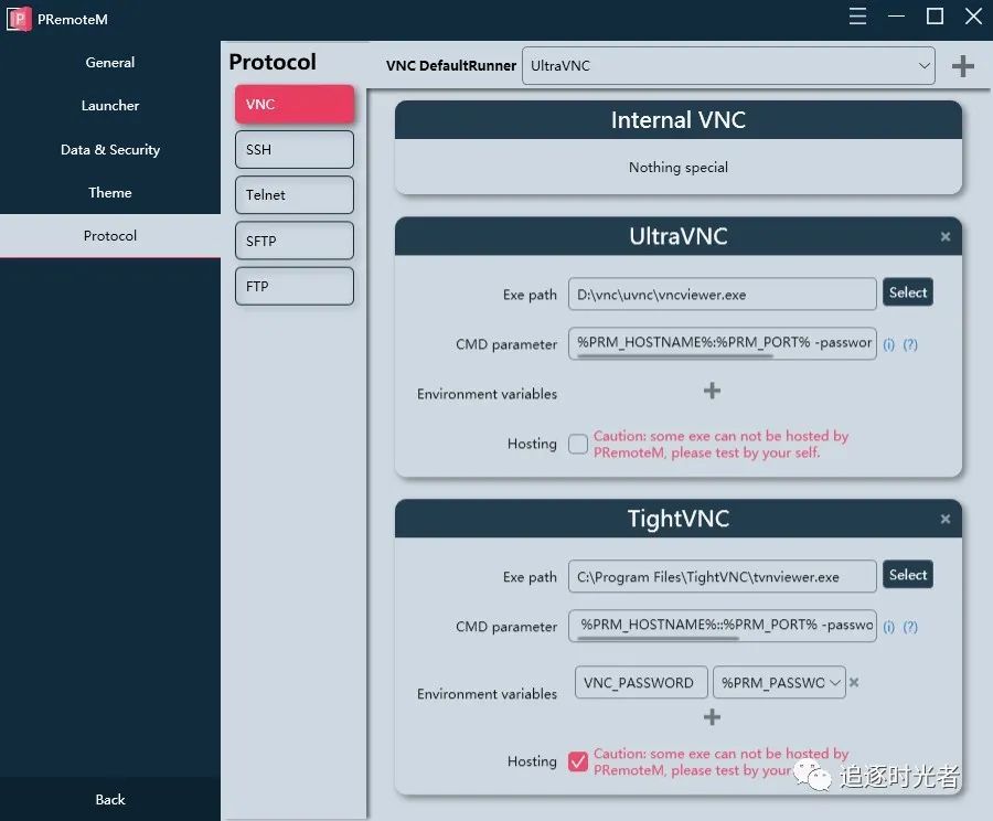 可自定义启动器,在 sFTP、VNC 等协议中,你可以用自己喜欢的程序来替换内置程序。 -