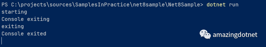 我们如果设置为 true 则会取消结束进程,asp.net core 也是借助于此来实现 graceful shutdown