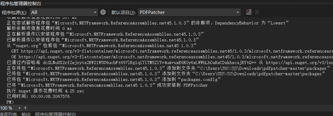 3、使用PM下载安装:打开程序包管理器控制台,输入: