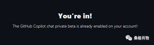 提交申请后,等待审核,审核结果会发送到你的邮箱,当你收到《Welcome to the Copilot chat private beta!》的邮件就意味着你可以使用 Copilot chat 了。