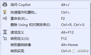 和 Copilot chat 的交互有两种方式,除了可以通过打开的常驻对话框窗口外,你也可以通过右键菜单呼出对话浮窗(默认快捷键 Alt + /)。